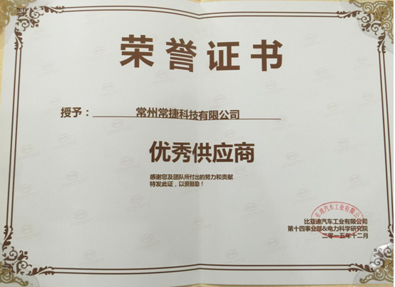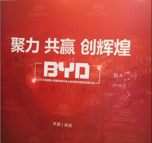 參加比亞迪汽車(chē)(BYD)第十四事業(yè)部&電力科學(xué)研究院“2015年供應(yīng)商大會(huì)”照片,并獲得“優(yōu)秀供應(yīng)商”榮譽(yù)稱號(hào)。